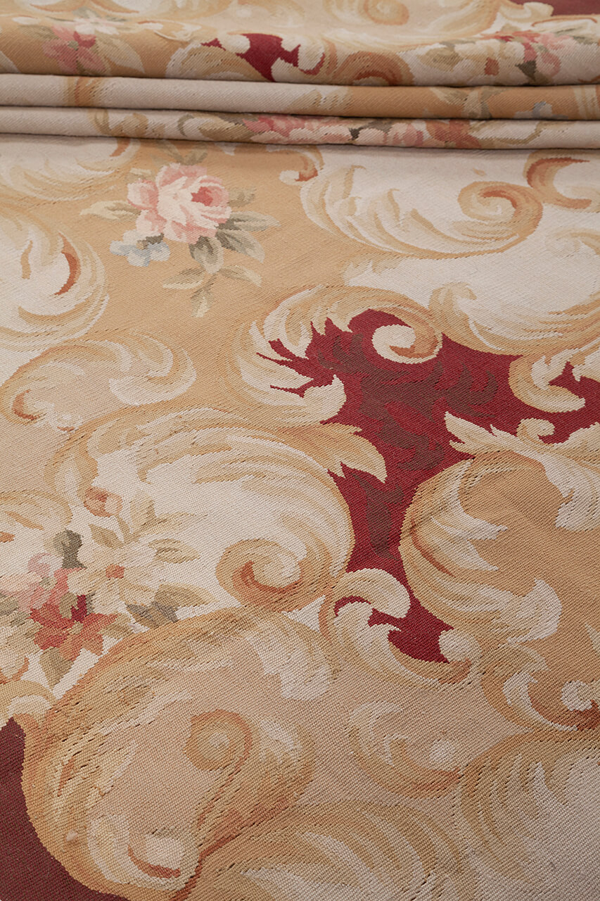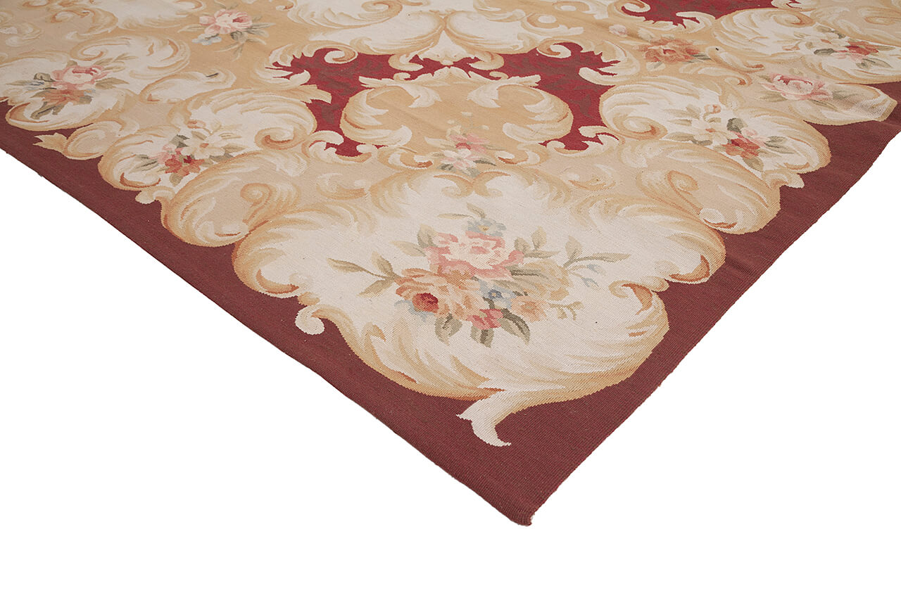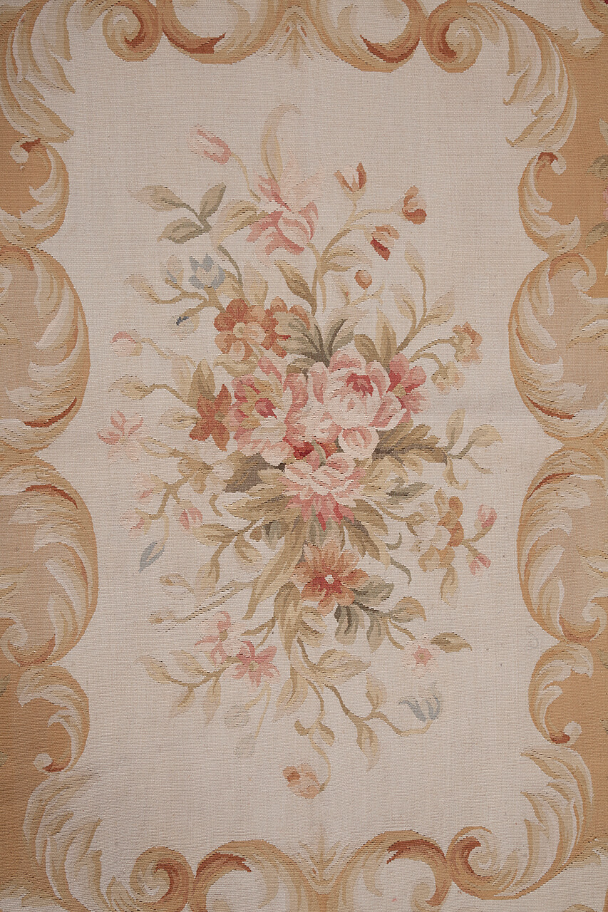 Aubusson rugs, Needle Point and Savonnerie are characterized by point plat weaving. Born as tapestries to adorn the palace walls and then used as rugs. The decorative motifs are generally floral and reflect the classical style, the colors are subtle and the designs take up the decorations in the vaults of the rooms in which they were located. Initially produced exclusively for the royal house of France, then spread in the upper middle class. Needle Point and Aubusson of modern production come mainly from China weaving and retrieving, processing and drawings, models of the most famous examples woven in the ancient royal factories of Aubusson.