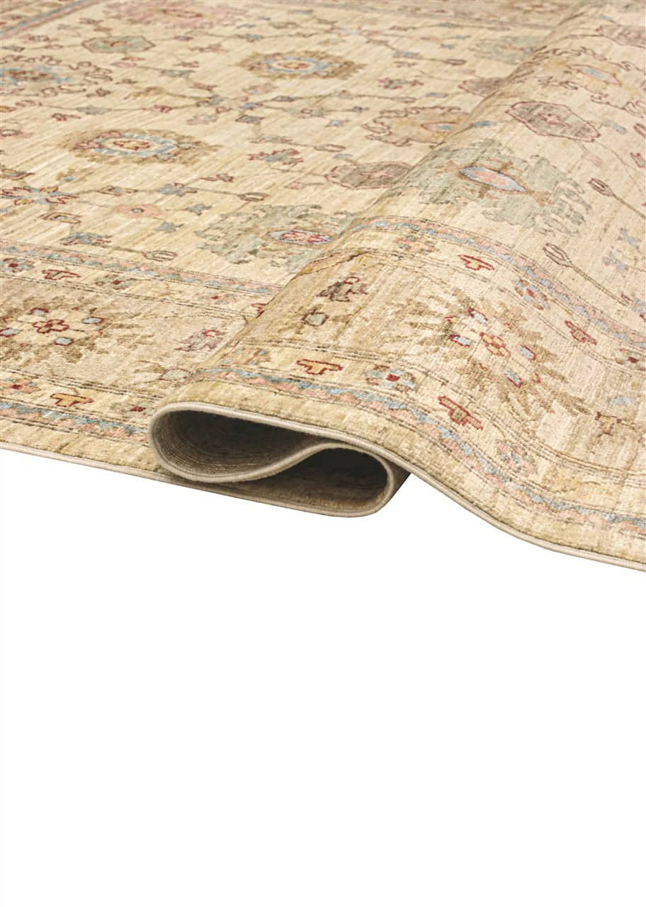 A carpet that has within it the ease of the charm of refined symbols without medallions but with unique colours. An elegant carpet without being too protagonist that blends happily with curtains and furniture.