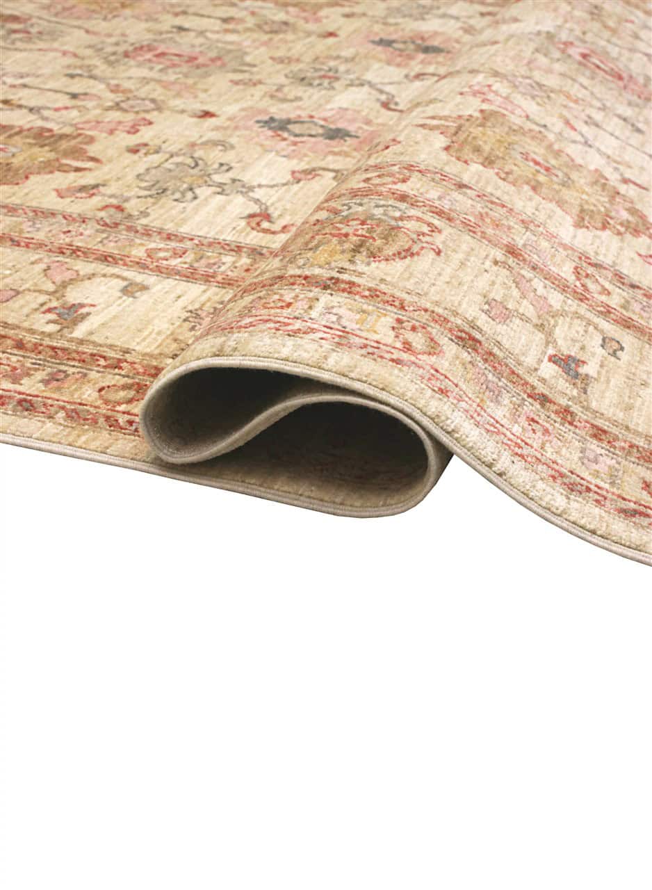 A carpet that has within it the ease of the charm of refined symbols without medallions but with unique colours. An elegant carpet without being too protagonist that blends happily with curtains and furniture.
