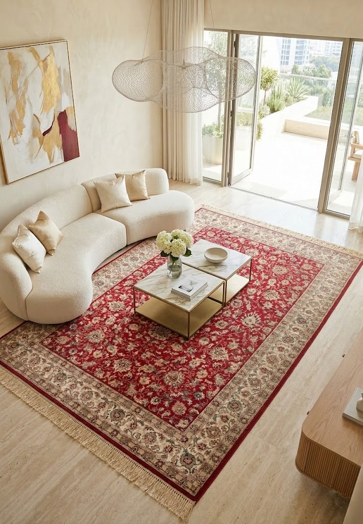 Farshian is a family of classic style rugs, with soft fringes at the ends and bright colors. They are made of viscose, a shiny and silky material that gives an elegant and delicate look and requires greater care in cleaning and care. The minimum thickness of the fleece makes them suitable for heated floors and for furnishing the sliding areas of the doors.