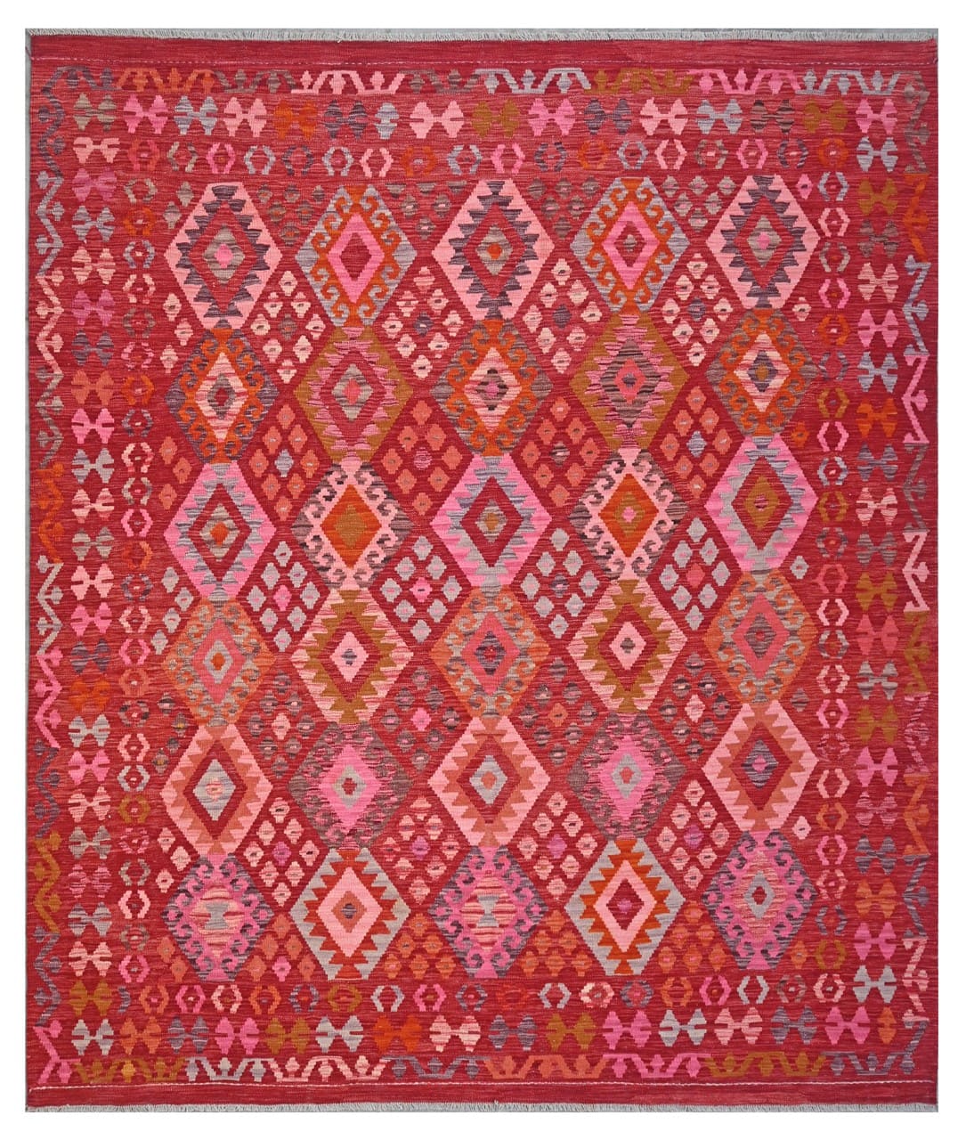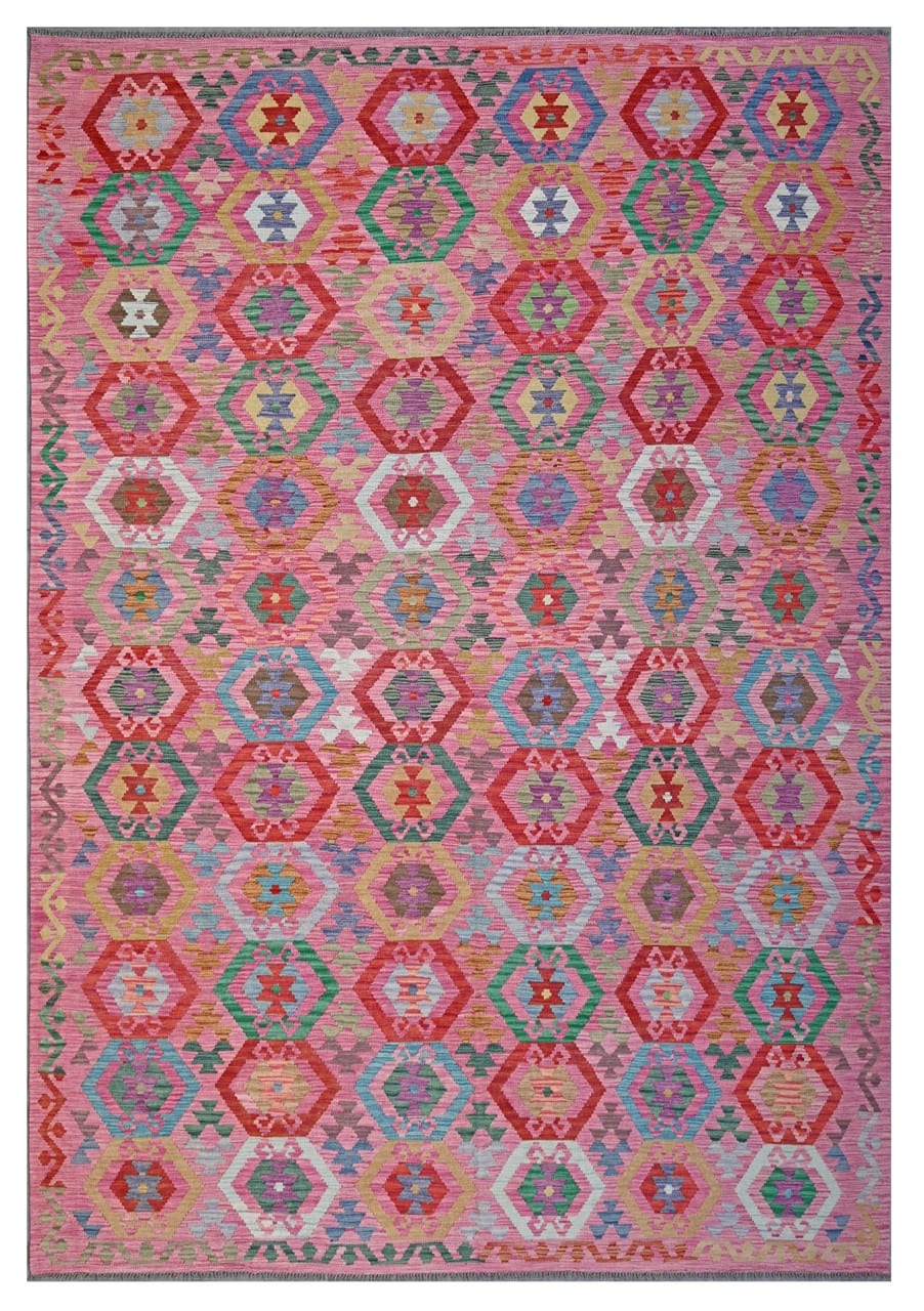Inspired by old fashioned rugs, this collection, transform the kilim into an excellent decorative element. This kilim collection represents the modern day transformation of tradition. Traditional Afghan pattern reinvented with bright colors.