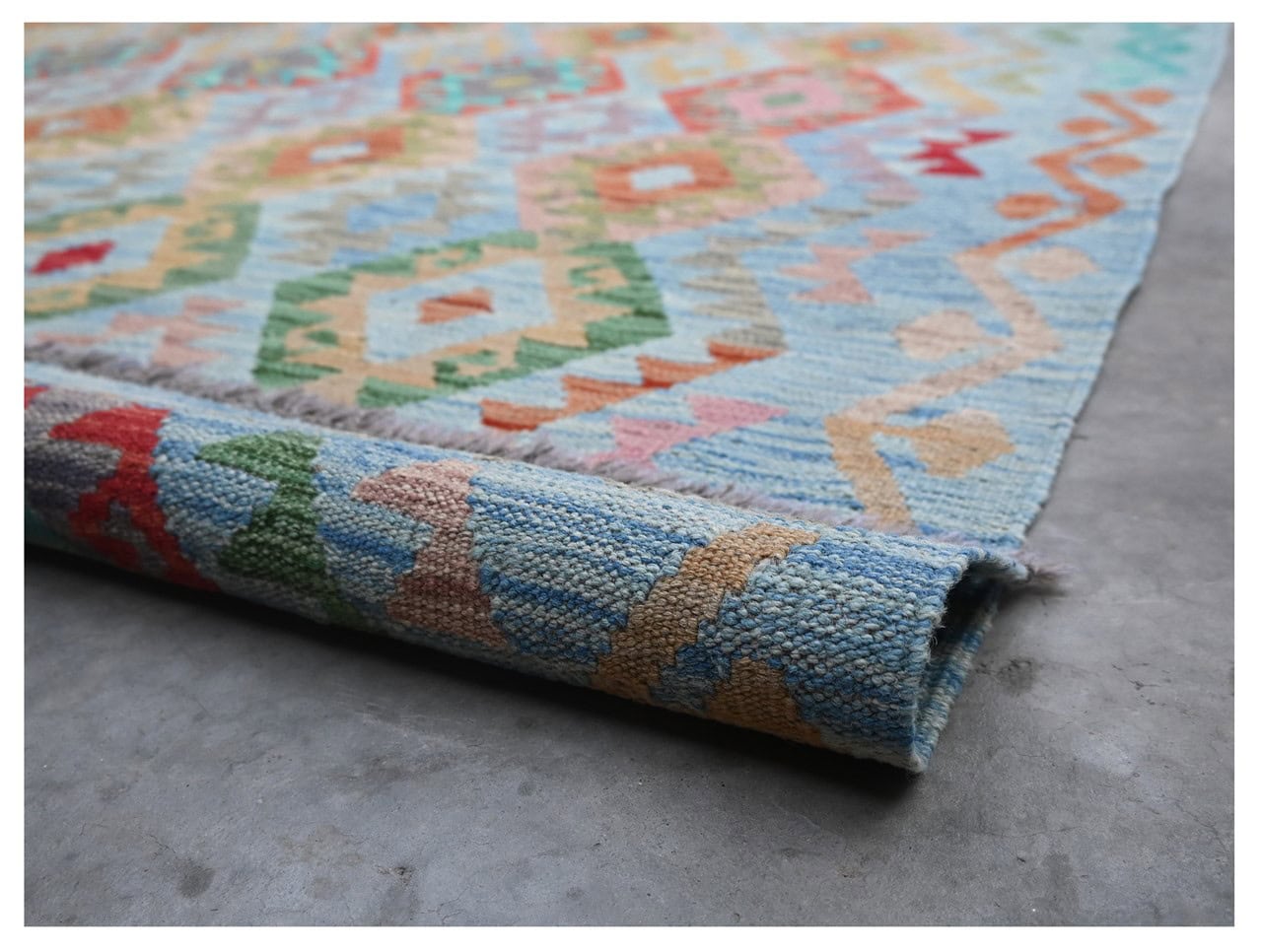 Inspired by old fashioned rugs, this collection, transform the kilim into an excellent decorative element. This kilim collection represents the modern day transformation of tradition. Traditional Afghan pattern reinvented with bright colors.