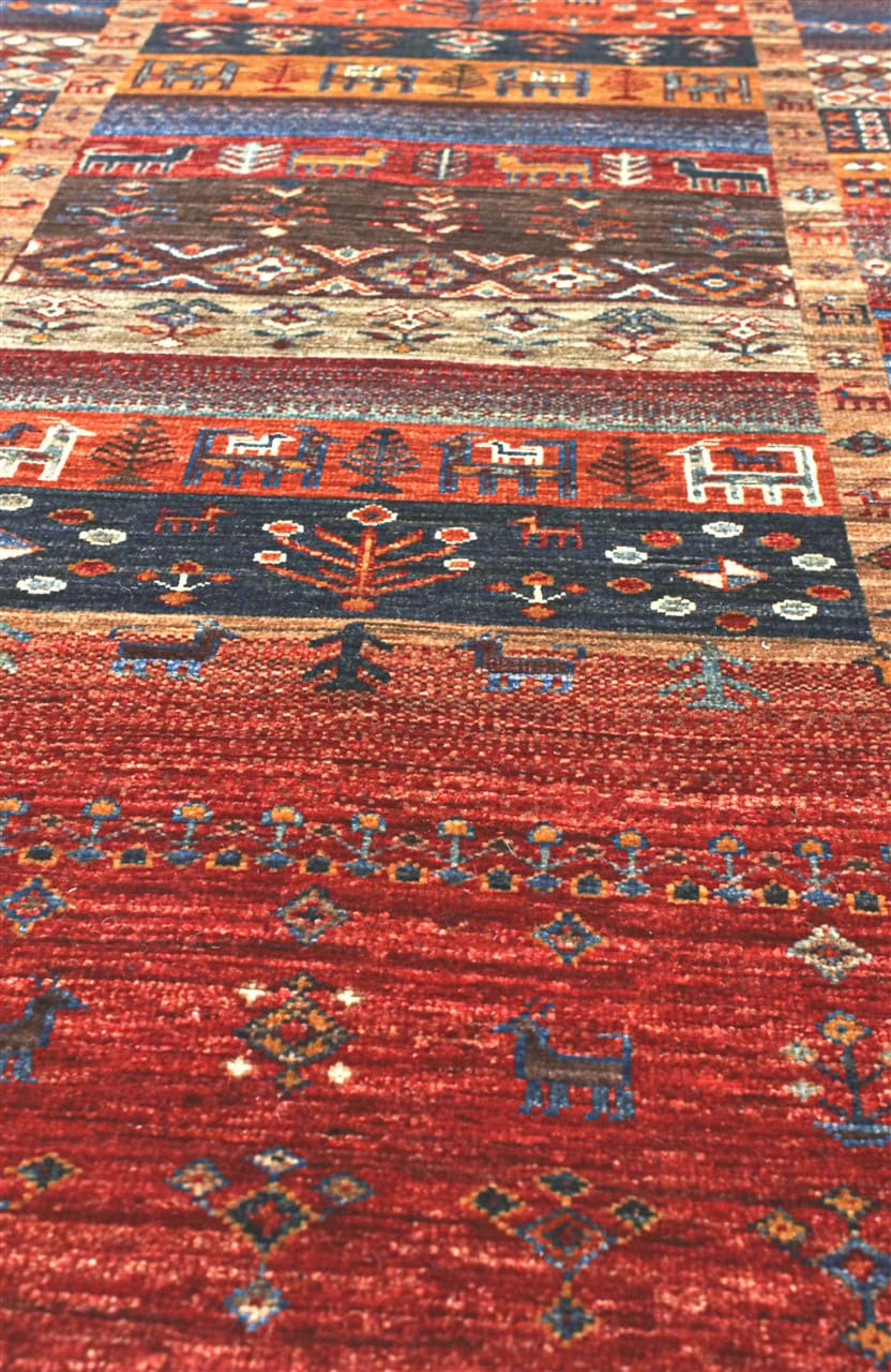 The production of Shabargan in Afghanistan offers us traditional symbols and examples inspired by the classic Baktiary or the Kurdish Shasavan carpets.