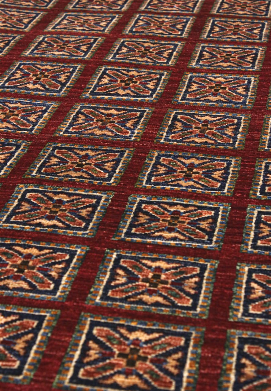 The production of Shabargan in Afghanistan offers us traditional symbols and examples inspired by the classic Baktiary or the Kurdish Shasavan carpets.