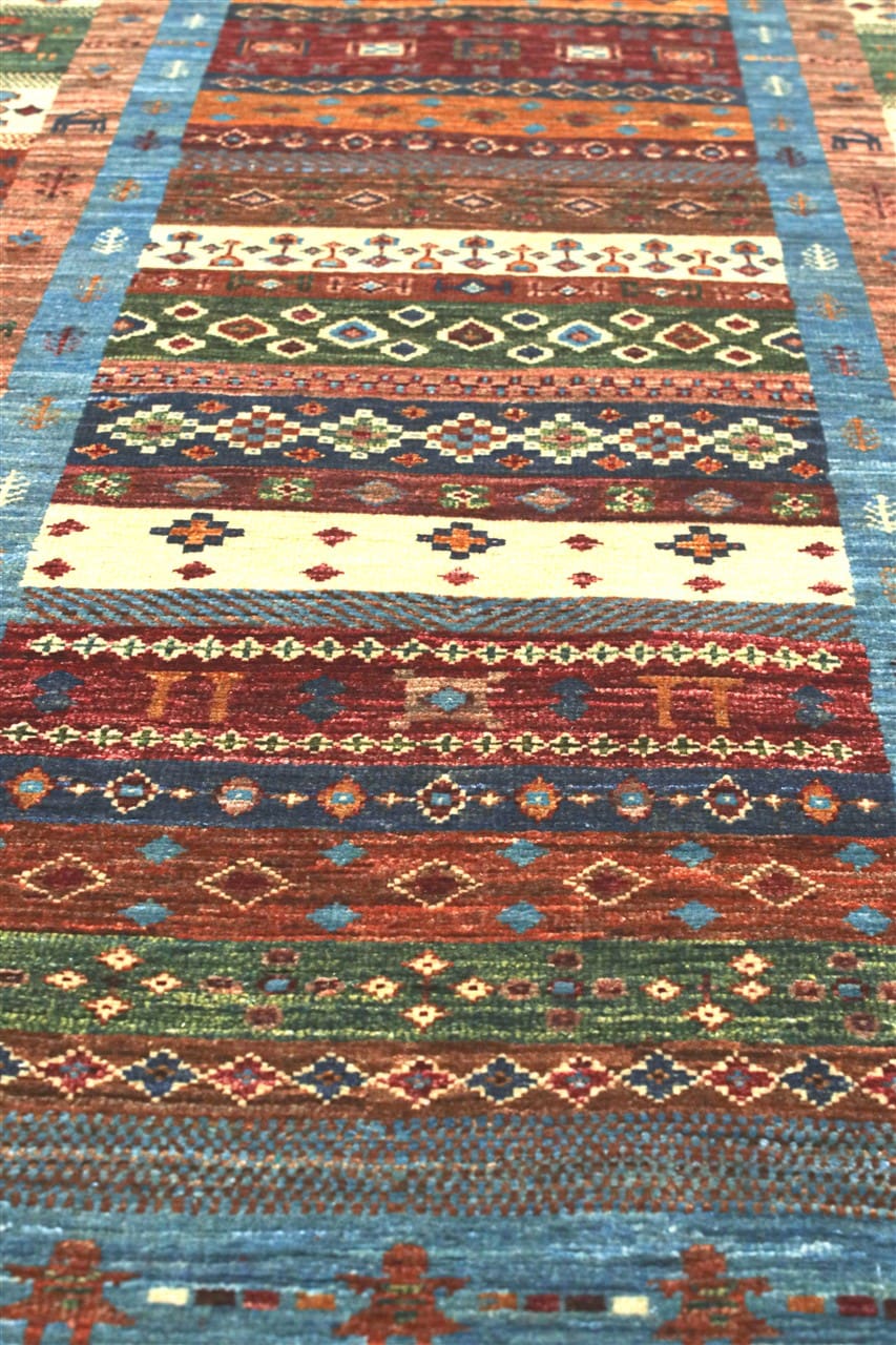 The production of Shabargan in Afghanistan offers us traditional symbols and examples inspired by the classic Baktiary or the Kurdish Shasavan carpets.