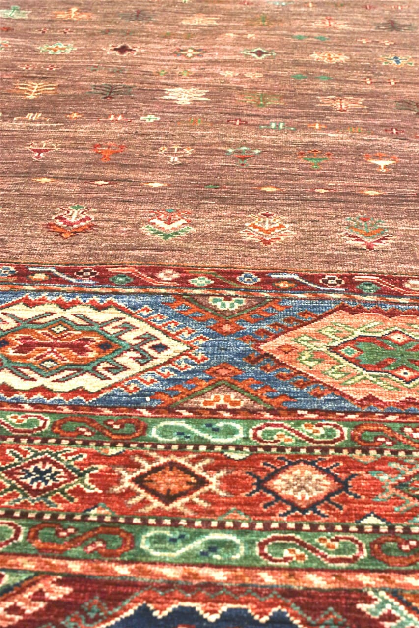 The production of Shabargan in Afghanistan offers us traditional symbols and examples inspired by the classic Baktiary or the Kurdish Shasavan carpets.