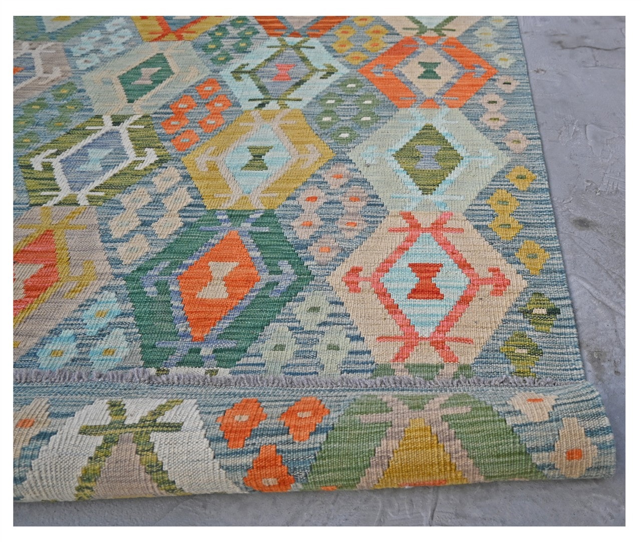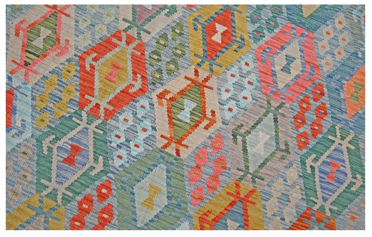 Ispirata ai tappeti vecchio stile, questa collezione trasforma i Kilim in un eccellente elemento decorativo. Questa collezione rappresenta la moderna trasformazione della tradizione. Modello afghano tradizionale reinventato con colori vivaci.