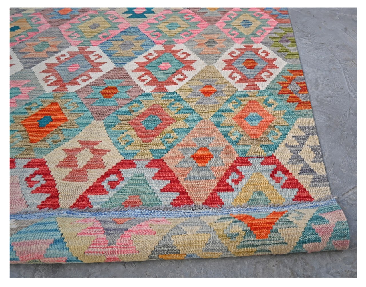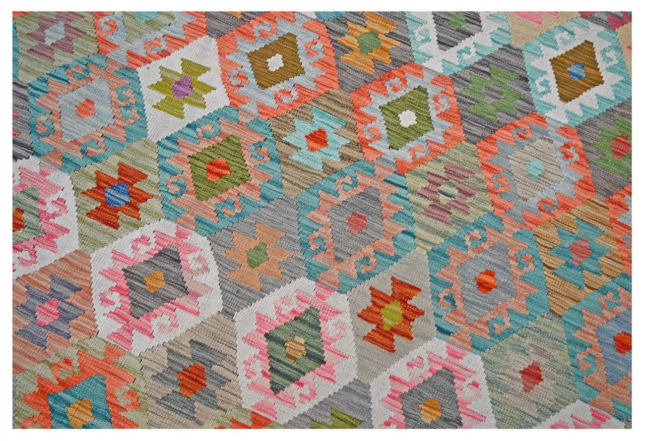 Ispirata ai tappeti vecchio stile, questa collezione trasforma i Kilim in un eccellente elemento decorativo. Questa collezione rappresenta la moderna trasformazione della tradizione. Modello afghano tradizionale reinventato con colori vivaci.