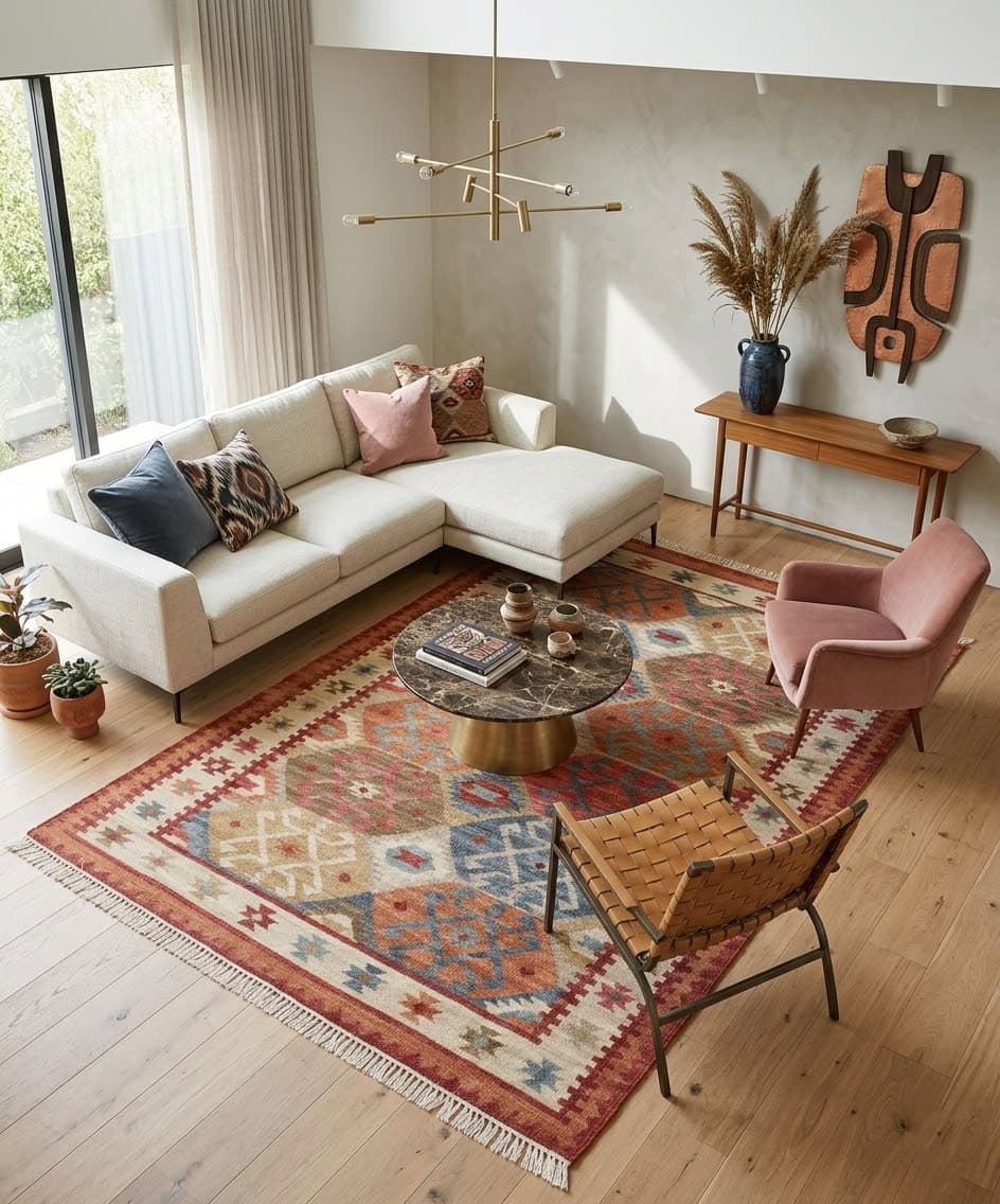 Kilim in lana intrecciata a mano. design classico della manifatture rurali, presantato