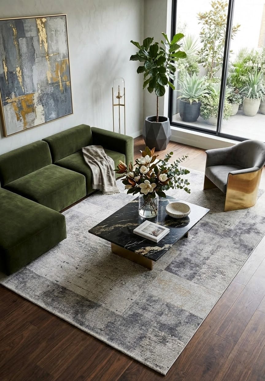 Un accurato motivo geometrico realizzato su diverse altezze di vello.
