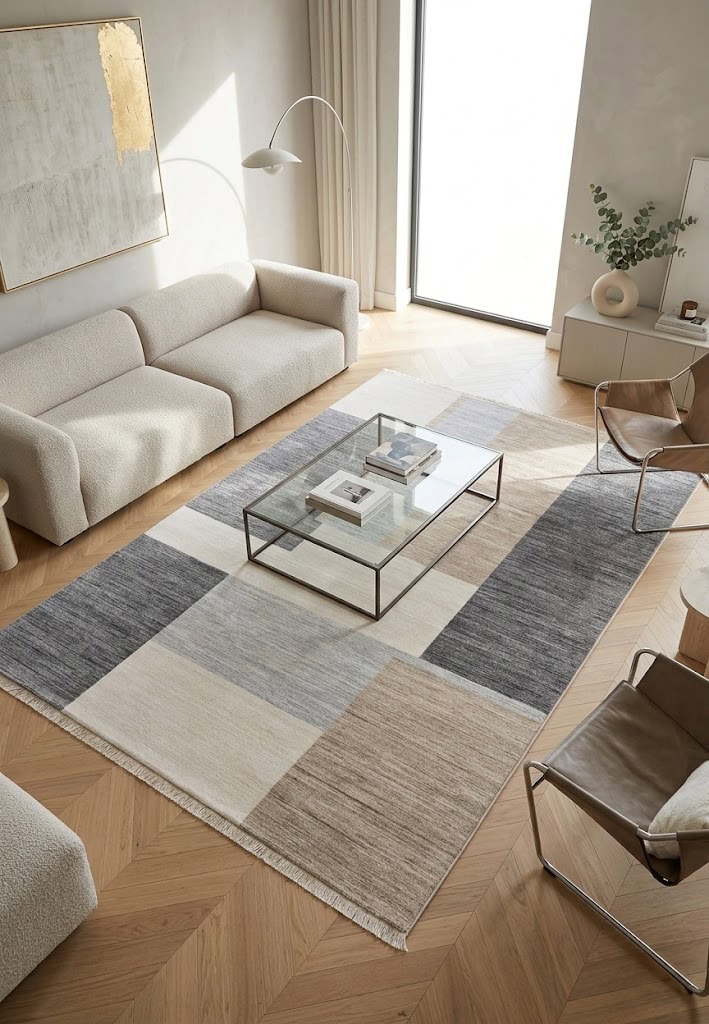 Tappeto geometrico che riprende lo stile del design moderno degli anni ’70, ma con l’utilizzo dei colori attuali dell’interior design contemporaneo. Prodotto tridimensionale con l’utilizzo di 2 differenti altezze di vello. Morbido resistente e maneggevole poichè leggero, e facile da pulire. Retro antiscivolo.