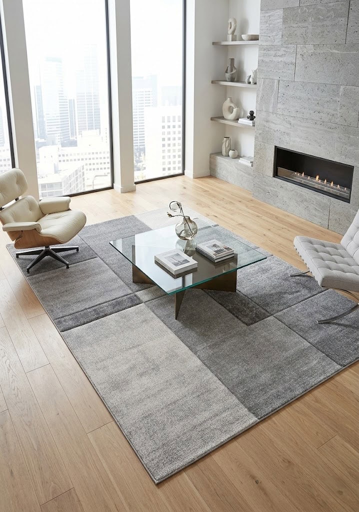 Tappeto creato in chiave moderna costituito da molteplici sagome sovrapposte. Il gioco di contrasti chiaro-scuro rende ancora più evidenti le differenti altezze del vello creando un effetto tridimensionale, quasi metafisico. Il polipropilene lo rende resistente e adatto a qualsiasi pavimento. Davvero interessante in camera da letto e in un salotto che presenta un arredamento moderno.